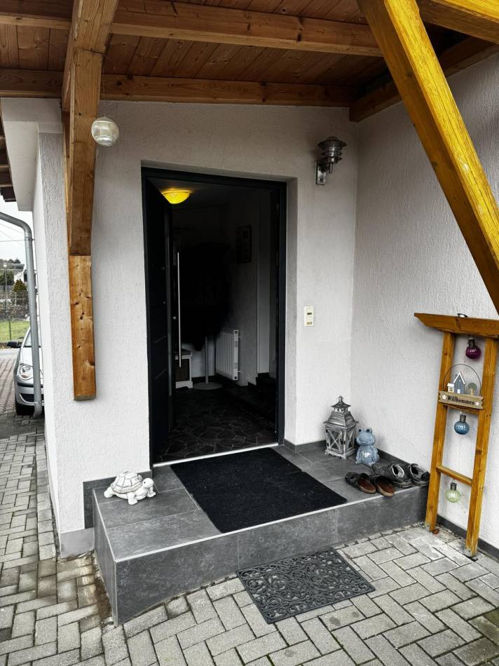 Das Erdgeschoss empfängt Sie über einen zentralen Eingangsbereich mit Windfang und Treppenhaus, von dem aus alle Räume übersichtlich erreichbar sind. Auf dieser Ebene befinden sich die Küche mit angrenzendem Essbereich, das Wohnzimmer sowie ein weiteres Zimmer, welches sich flexibel als Kinder-, Arbeits- oder Gästezimmer nutzen lässt.Das Hauptbadezimmer ist ebenfalls im Erdgeschoss untergebracht und verfügt über eine Badewanne, WC und Waschtisch.